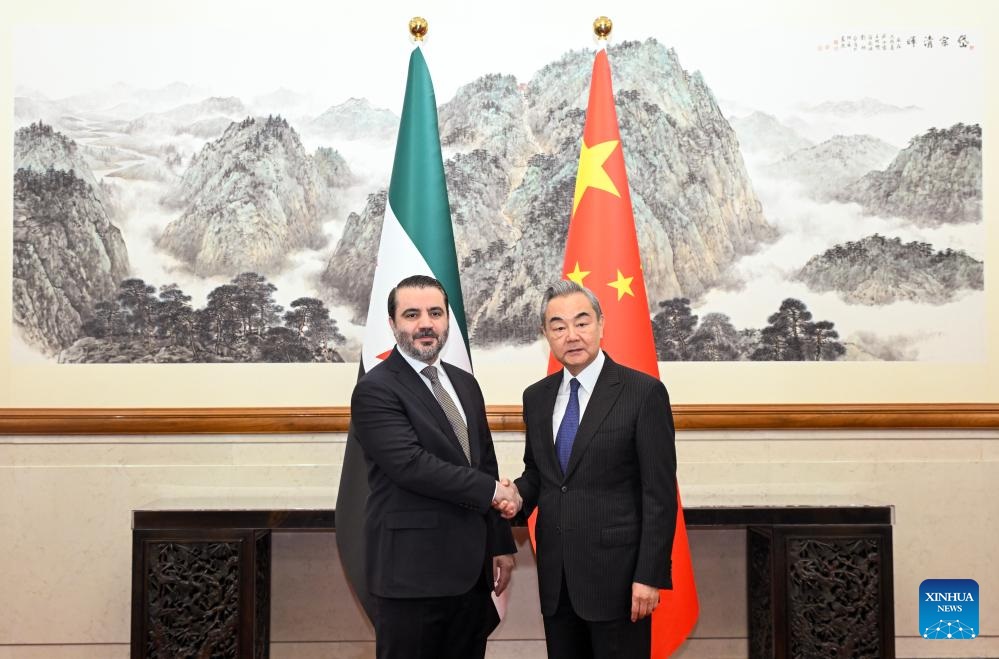 وانگ ای کی شام کی عبوری حکومت کے وزیر خارجہ اسد حسن الشیبانی سے ملاقات