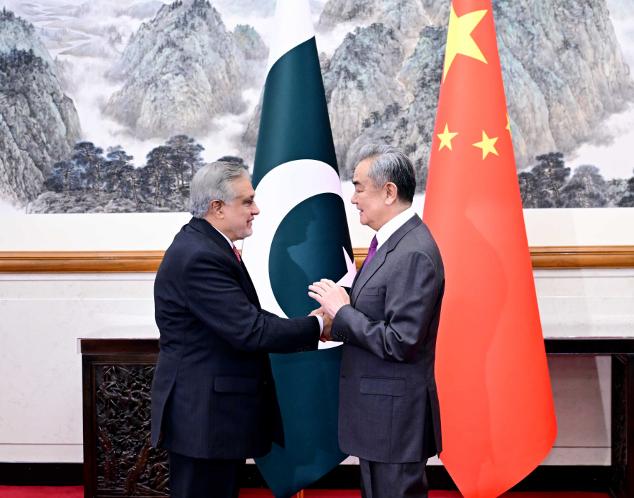چین کے نائب وزیراعظم ڈنگ شوئے شیانگ اور پاکستان کے نائب وزیر اعظم اور وزیر خارجہ اسحاق ڈار کے درمیان ملاقات
