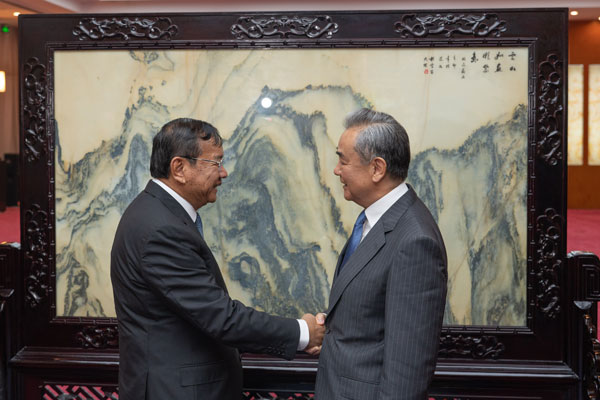کمبوڈیا کے نائب وزیر اعظم اور وزیر خارجہ کے ساتھ ملاقات کے دوران وانگ ای نے کہا کہ چین اور کمبوڈیا آہنی دوست اور ہمہ موسمی ہم نصیب معاشرہ کے شراکت دارہیں۔ چین آن لائن جوئے اور ٹیلی کام فراڈ کے خلاف کمبوڈیا کے کریک ڈاؤن کو سراہتا ہے اور امید کرتا ہے کہ کمبوڈیا سرحد پار مجرمانہ سرگرمیوں پر ضرب لگانے کے لئے خطے کے ممالک کے ساتھ ملکر مضبوط اقدامات جاری رکھے گا۔ براسوکن نے کہا کہ کمبوڈیا چین کے ساتھ تعلقات کو بہت اہمیت دیتا ہے۔ چین بین الاقوامی اور علاقائی امور میں تعمیری کردار ادا کرتا ہے اور امن اور ترقی کی علامت ہے۔ کمبوڈیا کو امید ہے کہ موجودہ اجلاس کے ذریعے علاقائی خوشحالی اور استحکام کو فروغ ملے گا۔