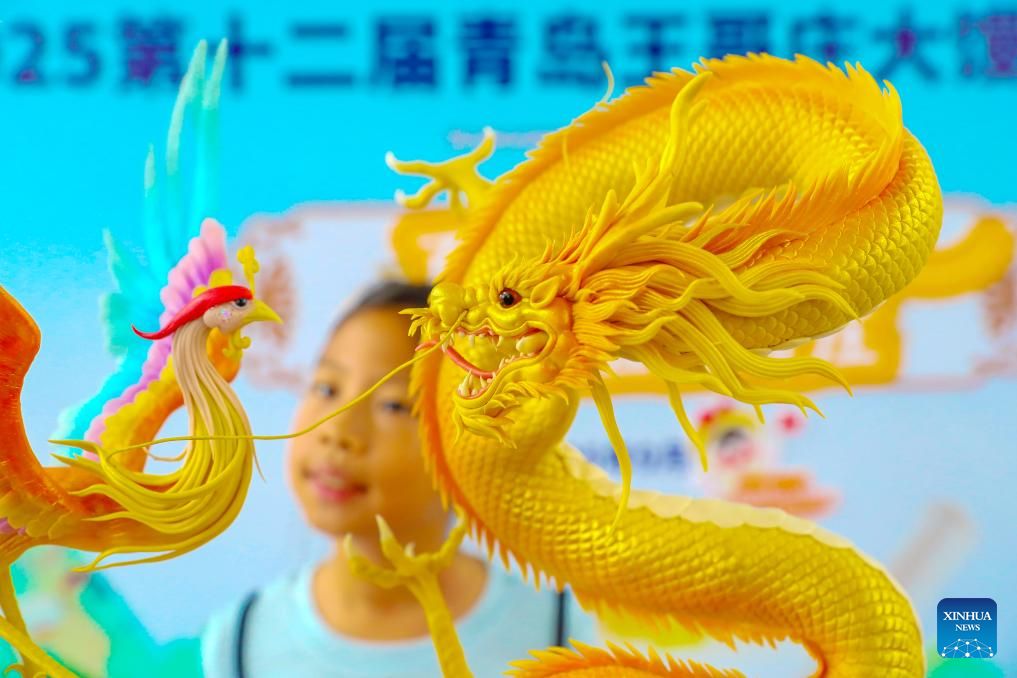 | 27 ستمبر 2025۔مشرقی چین کے صوبے شاندونگ کے شہر چنگ داو میں، آرٹسٹک سٹیمڈ بن مقابلے میں پیش کیا گیا، ڈریگن کی شکل کا سٹیم بن۔ (تصویر: جانگ جن گانگ/شنہوا) |
