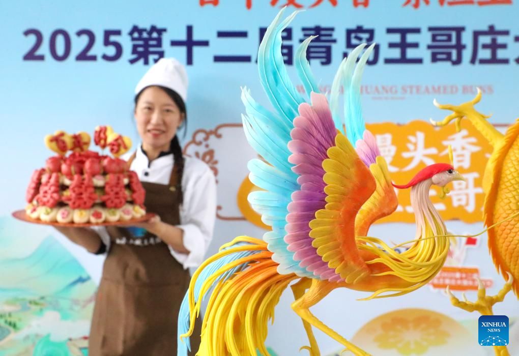 | 27 ستمبر 2025۔مشرقی چین کے صوبے شاندونگ کے شہر چنگ داو میں، آرٹسٹک سٹیمڈ بن مقابلے میں سٹیم بن بنانے کی ماہر اپنے بنائے ہوئے بنز کے ساتھ ۔ (تصویر: جانگ جن گانگ/شنہوا) |