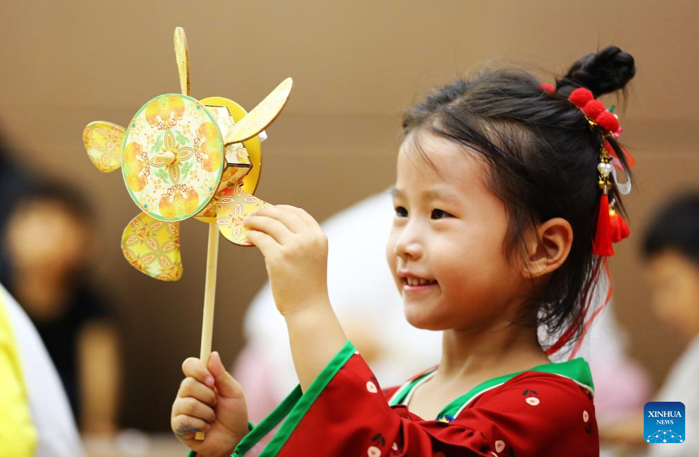 | 6 اکتوبر 2025 ۔ صوبہ شاندونگ کے شہر تھانگ جو کے میوزیم میں ایک بچی روایتی ثقافتی عناصر سے مزین پون چکی کے کھلونے سے کھیل رہی ہے۔ چین بھر میں وسط خزاں تہوار کی مناسبت سے مختلف روایتی ثقافتی تقریبات کا انعقاد کیا گیا جن میں لوگوں کی ایک بڑی تعداد نے شرکت کی۔ (لی جی جن/شنہوا) |