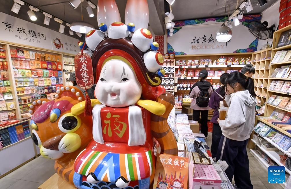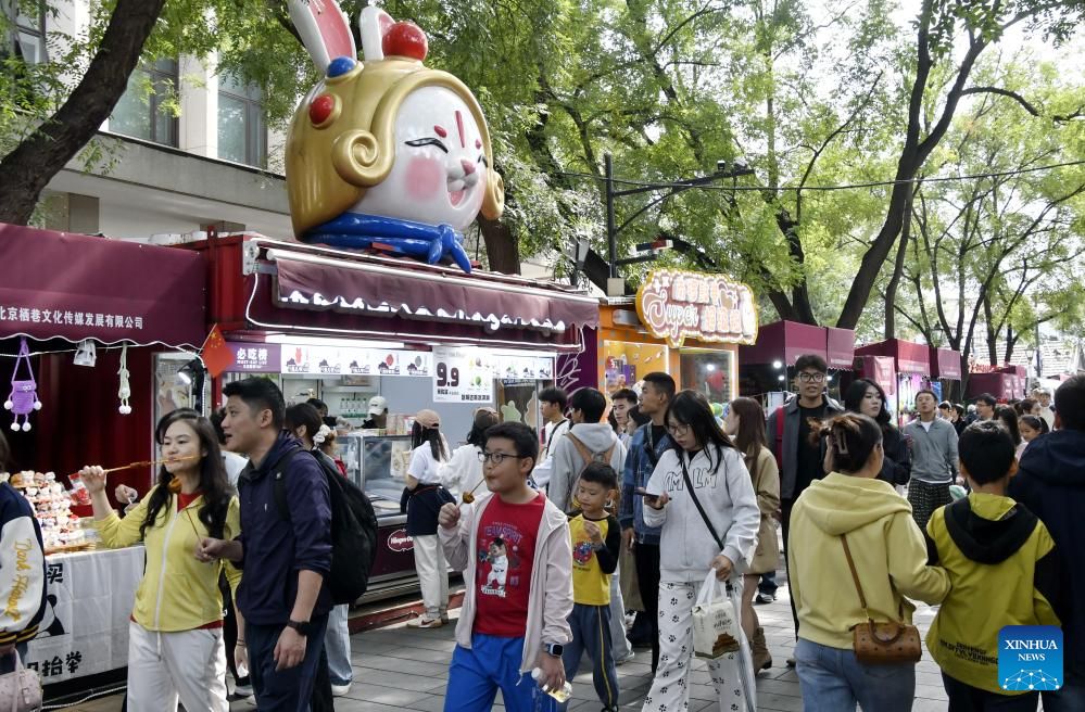 | 6 اکتوبر 2025 ۔ بیجنگ کی یاندائےشی جئے سٹریٹ میں لوگ مختلف سوونیئرز خرید رہے ہیں۔ چین بھر میں وسط خزاں تہوار کی مناسبت سے مختلف روایتی ثقافتی تقریبات کا انعقاد کیا گیا جن میں لوگوں کی ایک بڑی تعداد نے شرکت کی۔ (لی شن/شنہوا) |