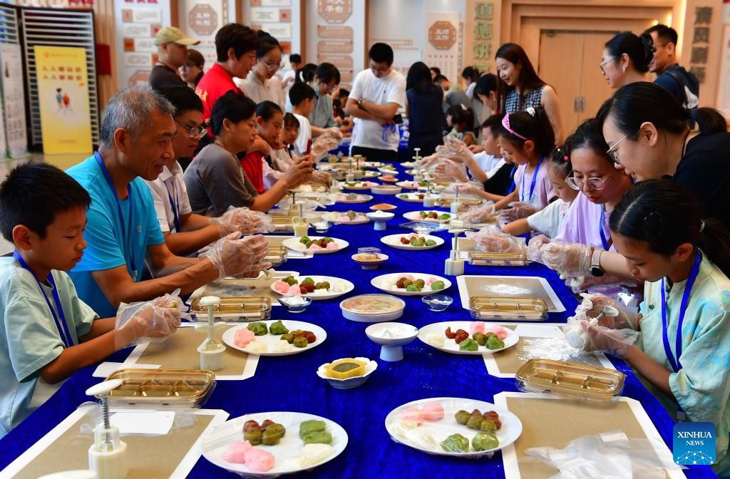 | 6 اکتوبر 2025 ۔ چین کے مشرقی صوبے جیانگ سو کے شہر یانگ جو میں بچے روایتی مون کیک بنا رہے ہیں۔چین بھر میں وسط خزاں تہوار کی مناسبت سے مختلف روایتی ثقافتی تقریبات کا انعقاد کیا گیا جن میں لوگوں کی ایک بڑی تعداد نے شرکت کی۔ (مینگ ڈی لونگ/شنہوا) |