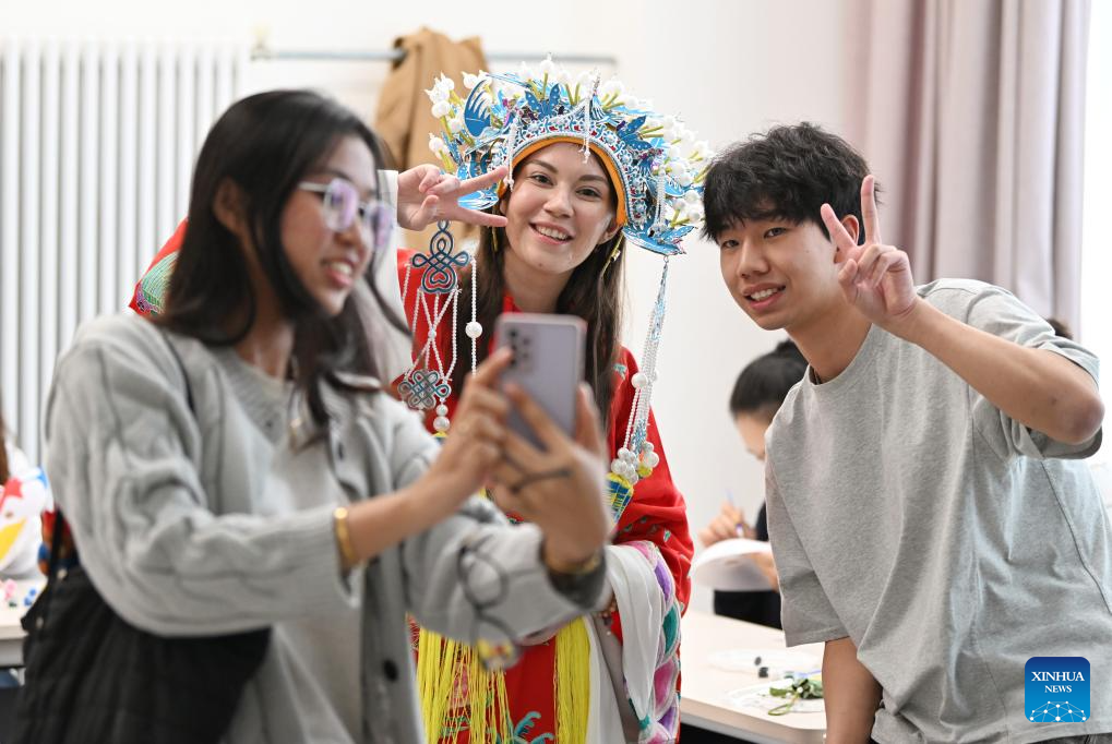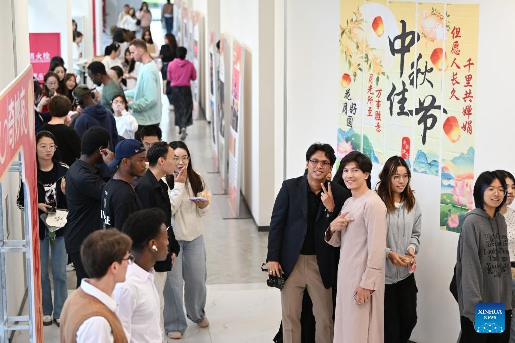 | 6 اکتوبر 2025 ۔ تھیان جن کی تھیان جن نارمل یونیورسٹی میں وسط خزاں تہوار کی مناسبت سے منعقدہ تقریب میں شریک چینی اور غیر ملکی طلبہ۔ چین بھر میں وسط خزاں تہوار کی مناسبت سے مختلف روایتی ثقافتی تقریبات کا انعقاد کیا گیا جن میں لوگوں کی ایک بڑی تعداد نے شرکت کی۔ (لی رن/شنہوا) |