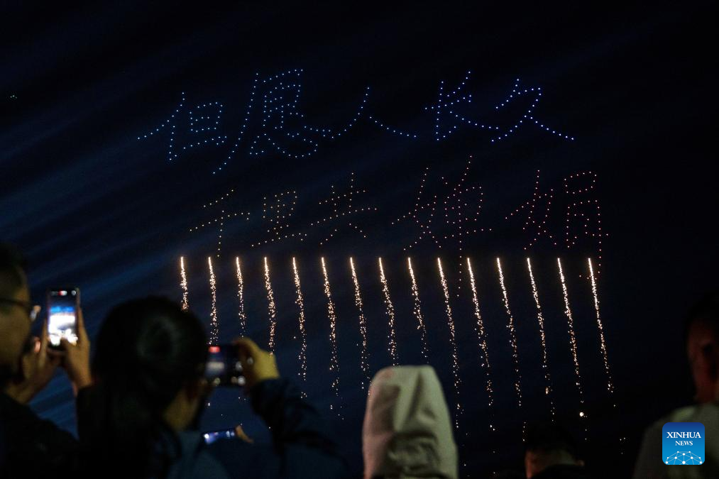 | 6 اکتوبر 2025 ۔ صوبہ ہیلونگ جیانگ کے شہر ہاربن میں منعقدہ ڈرون لائٹ شو ۔ چین بھر میں وسط خزاں تہوار کی مناسبت سے مختلف روایتی ثقافتی تقریبات کا انعقاد کیا گیا جن میں لوگوں کی ایک بڑی تعداد نے شرکت کی۔ (جانگ تھاو/شنہوا) |