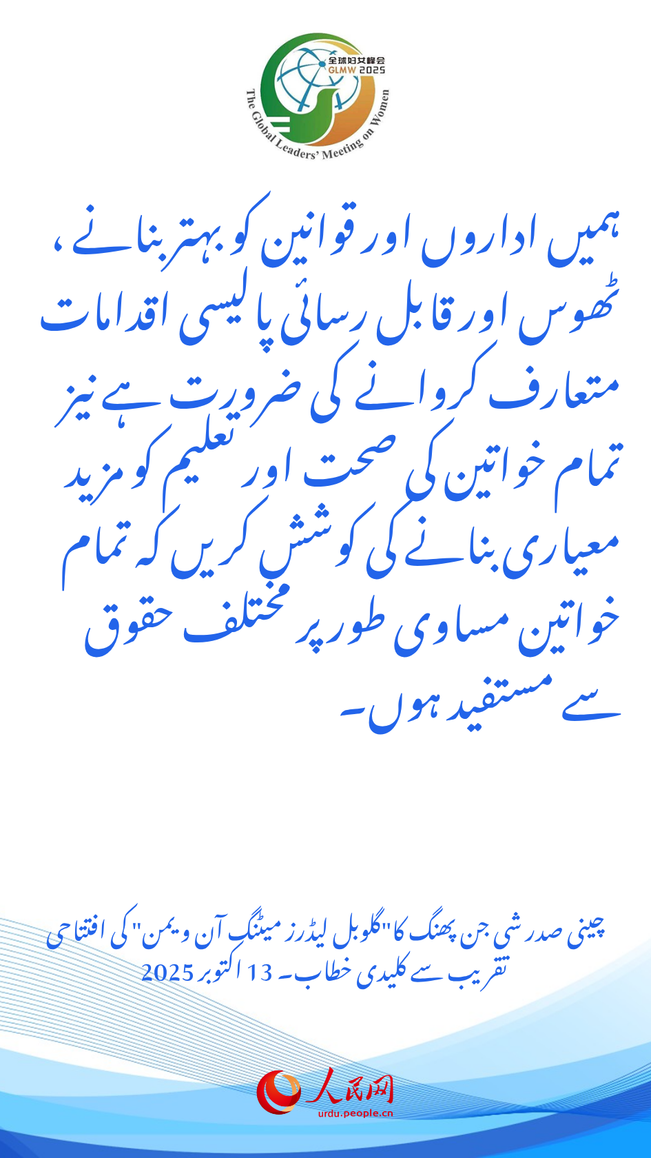 "گلوبل لیڈرز میٹنگ آن ویمن" کی افتتاحی تقریب میں چینی صدر شی جن پھنگ کے کلیدی خطاب کے اہم نکات (5)