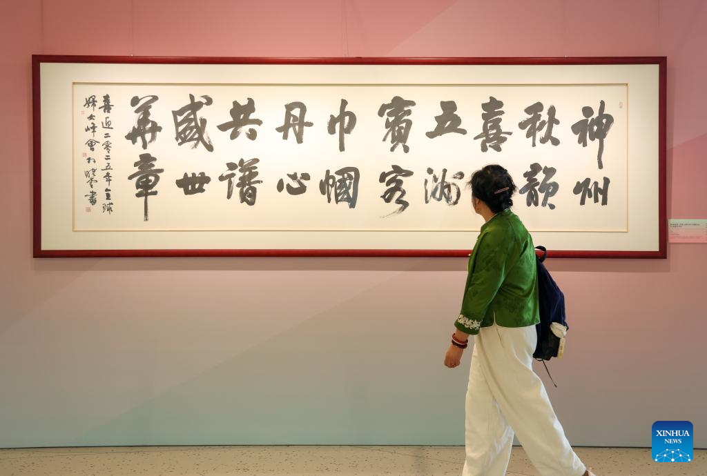 | 13 اکتوبر 2025۔ بیجنگ میں منعقدہ "گلوبل لیڈرز میٹنگ آن ویمن" کے دوران شرکا ، خصوصی نمائش "ہیریٹیج بلاسمز ، ویمن شائن" میں خوبصورت چینی فن پارے دیکھ رہے ہیں (شنہوا/ یان لن ین) |