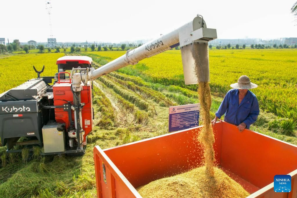 | 15 اکتوبر 2025۔صوبہ جہ جیانگ کی ڈی چنگ کاونٹی کے قصبے شن 'آن میں کسان چاول کی فصل کو ہارویسٹر کی مدد سے کاٹ کر ٹرک میں لاد رہے ہیں ۔ ( یاو ہائے شیانگ /شنہوا) |