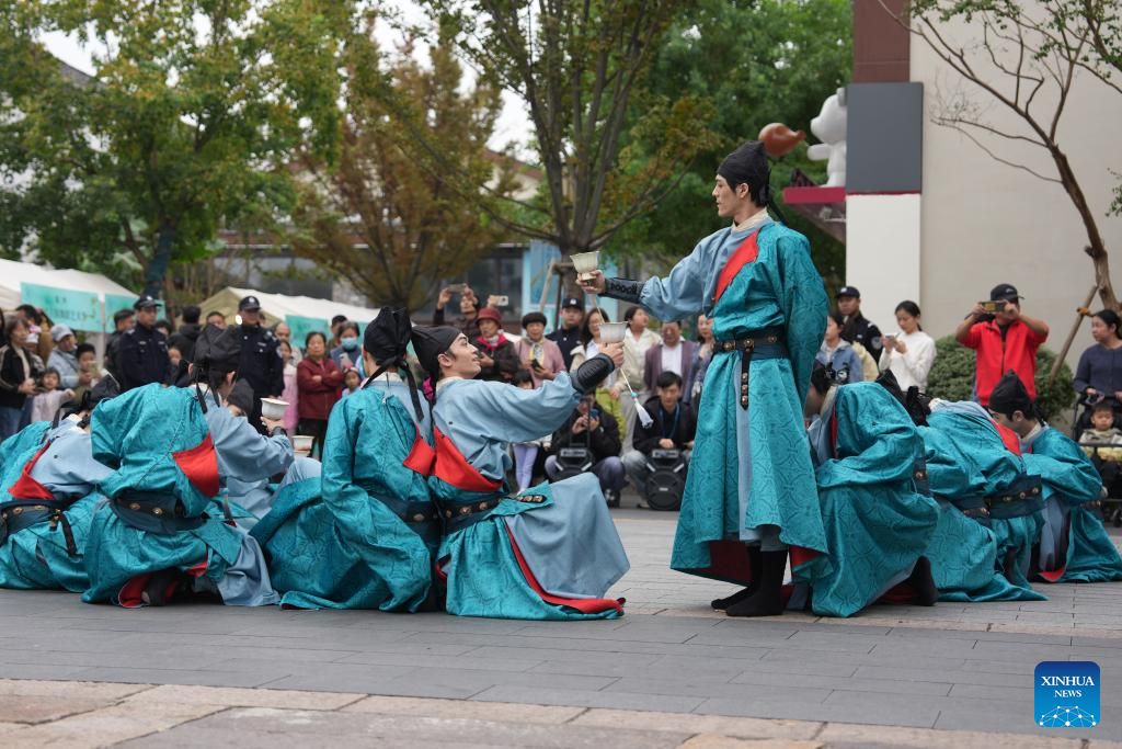 | 26 اکتوبر 2025۔ صوبہ جی جیانگ کی کاونٹی دی چنگ کے تاریخی شن شی ٹاون میں منعقدہ ڈانس آرٹ فیسٹیول کے دوران رقاص اپنے فن کا مظاہرہ کر رہے ہیں ( شنہوا/ حوانگ جونگ جی) |