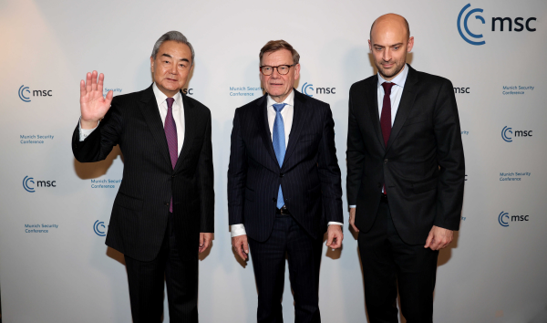 13 فروری کو سی پی سی کی مرکزی کمیٹی کے سیاسی بیورو کے رکن اورچینی وزیر خارجہ وانگ ای نے جرمنی کے شہر میونخ میں جرمن وزیر خارجہ یوہان واڈے فیہول اور فرانسیسی وزیر خارجہ جین نوئل ہاروٹ کے ساتھ سہ فریقی وزرائے خارجہ کی ملاقات میں شرکت کی ۔