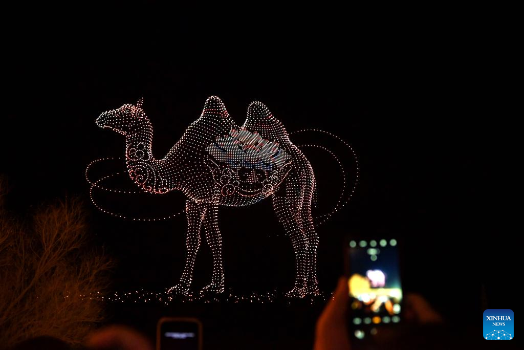 | 22 فروری 2026۔ چین کے شمال مغربی صوبے گانسو کے خوبصورت سیاحتی مقام دون حوانگ میں منعقدہ ڈرون شو کو لوگوں کی ایک بڑی تعداد نے دیکھا (شنہوا۔ جانگ شیاو لیانگ) |
